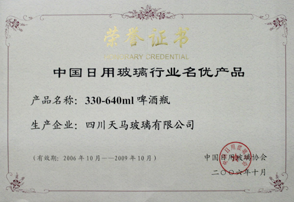 中國(guó)日用玻璃行業(yè)名優(yōu)產(chǎn)品-啤酒瓶